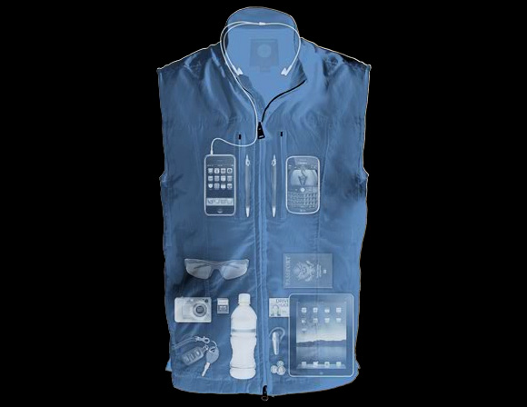 Ha simple vista parece un chaleco común y corriente, un poco aburrido incluso; sin embargo, este chaleco de viaje para hombre (US$100), está diseñado para contener muchos de sus gadgets favoritos. Usted puede llevar su iPhone, iPod, pasaporte, botella de agua, las llaves, gafas y muchísimas cosas más que se le ocurran dentro de sus 22 bolsillos interiores y exteriores de este chaleco. Incluso tiene un bolsillo grande para el nuevo iPad!! Espectacular! quien dijo que era sólo para hombres! yo también lo quiero!
